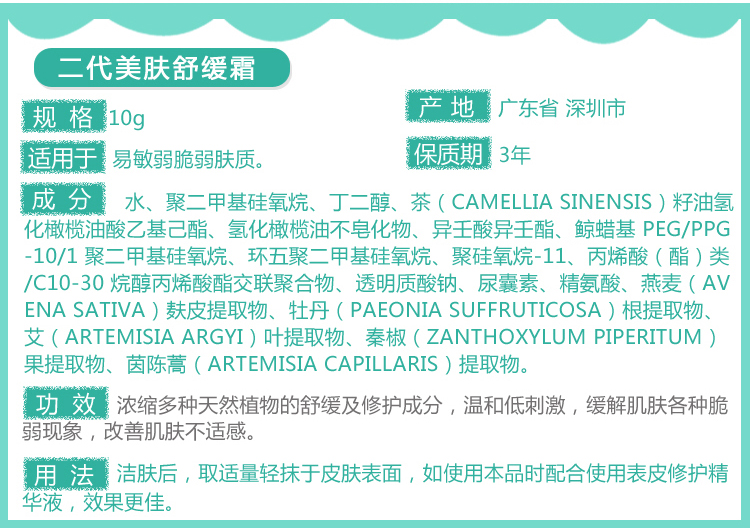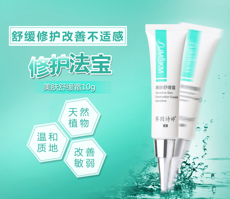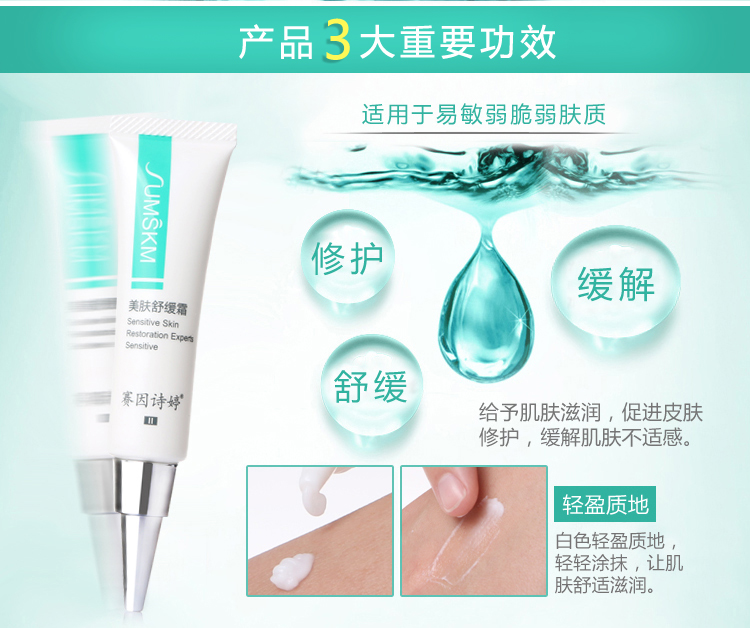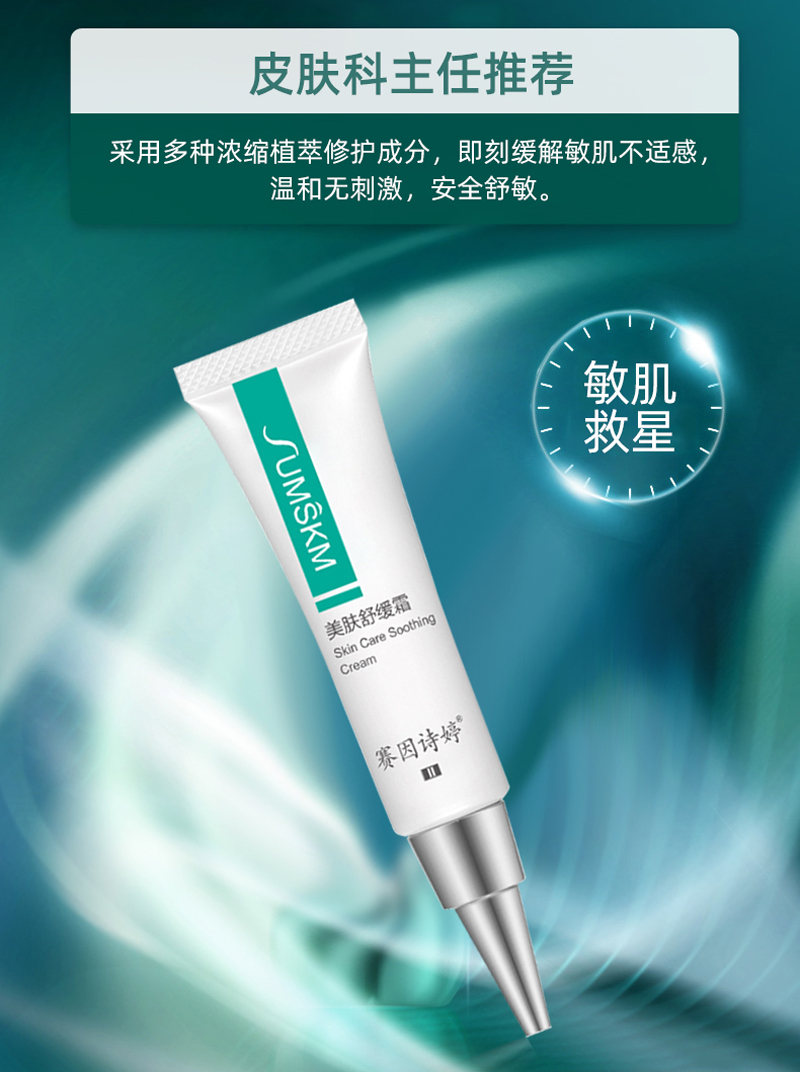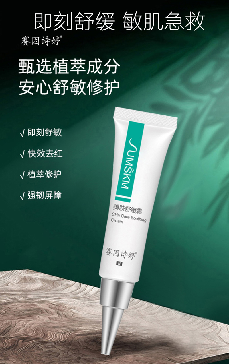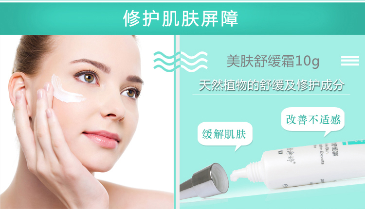 ①皮肤正在红敏时,使用美肤舒缓霜能够即时解决皮肤的红、痛、痒、干等症状。
