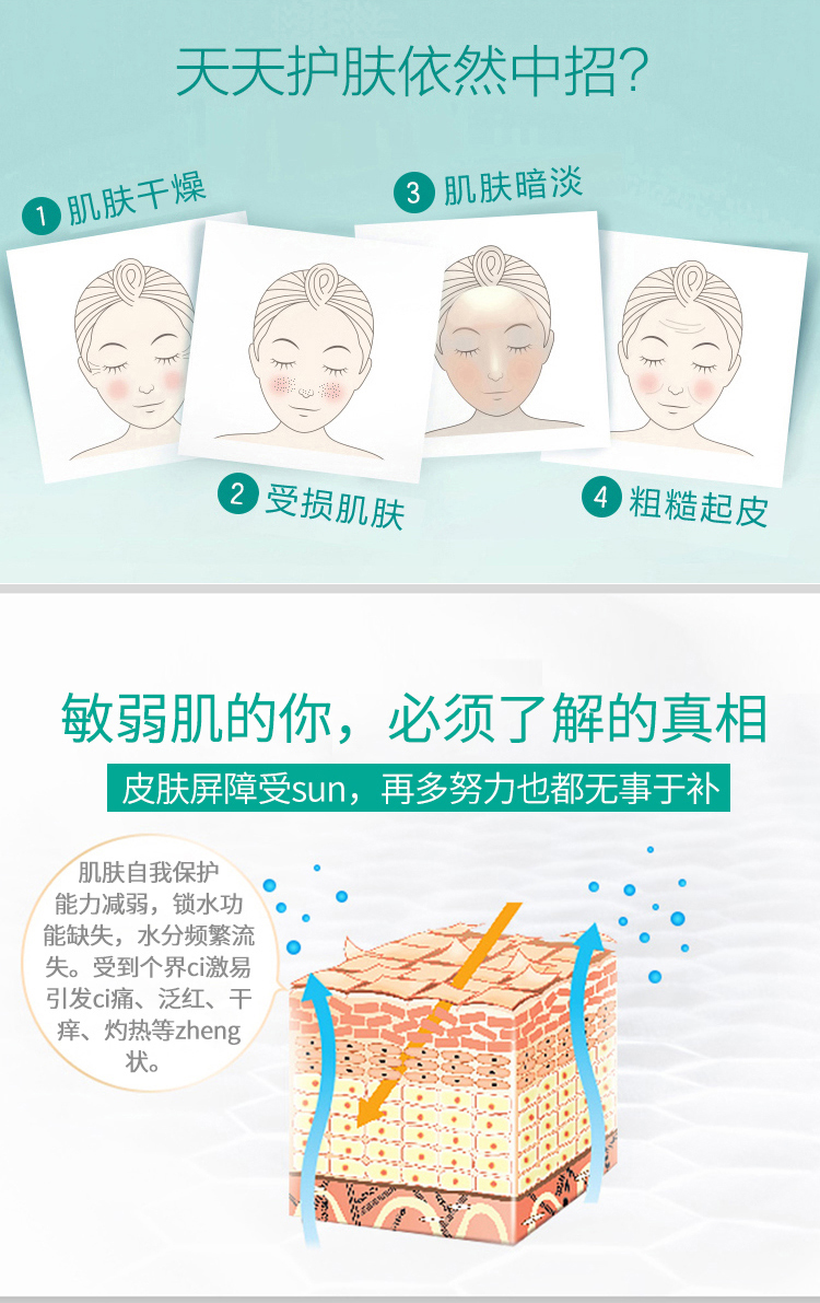 ②在达到补水保湿的同时,修复完善肌肤的屏障功能,有增强敏弱肌肤的抵抗能力。