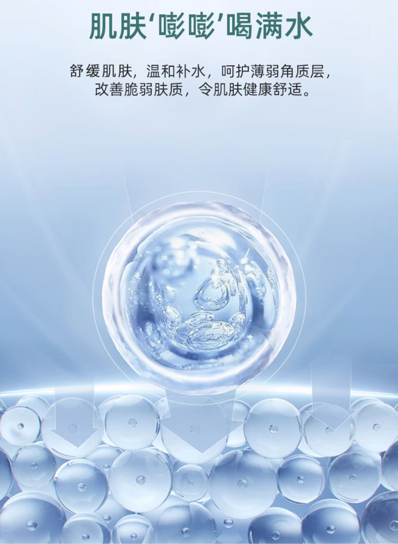 产品功效:温和补充水分,呵护薄弱角质层/红血丝,改善红敏/脆弱肤质,令肌肤健康舒适。