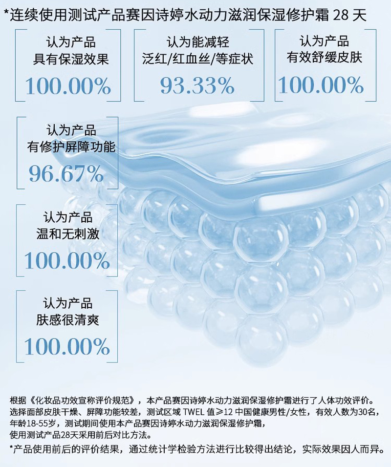 产品功效:补水锁水,滋润保湿,修护肌肤,改善肌肤质地,肌肤重拾水润光泽。