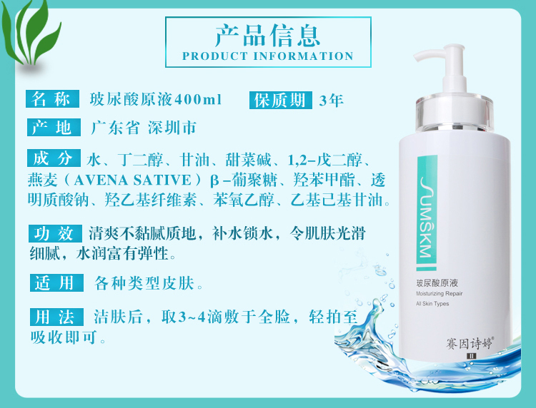 产品功效:清爽不黏腻质地,补水锁水,令肌肤光滑细腻,水润亮泽。
