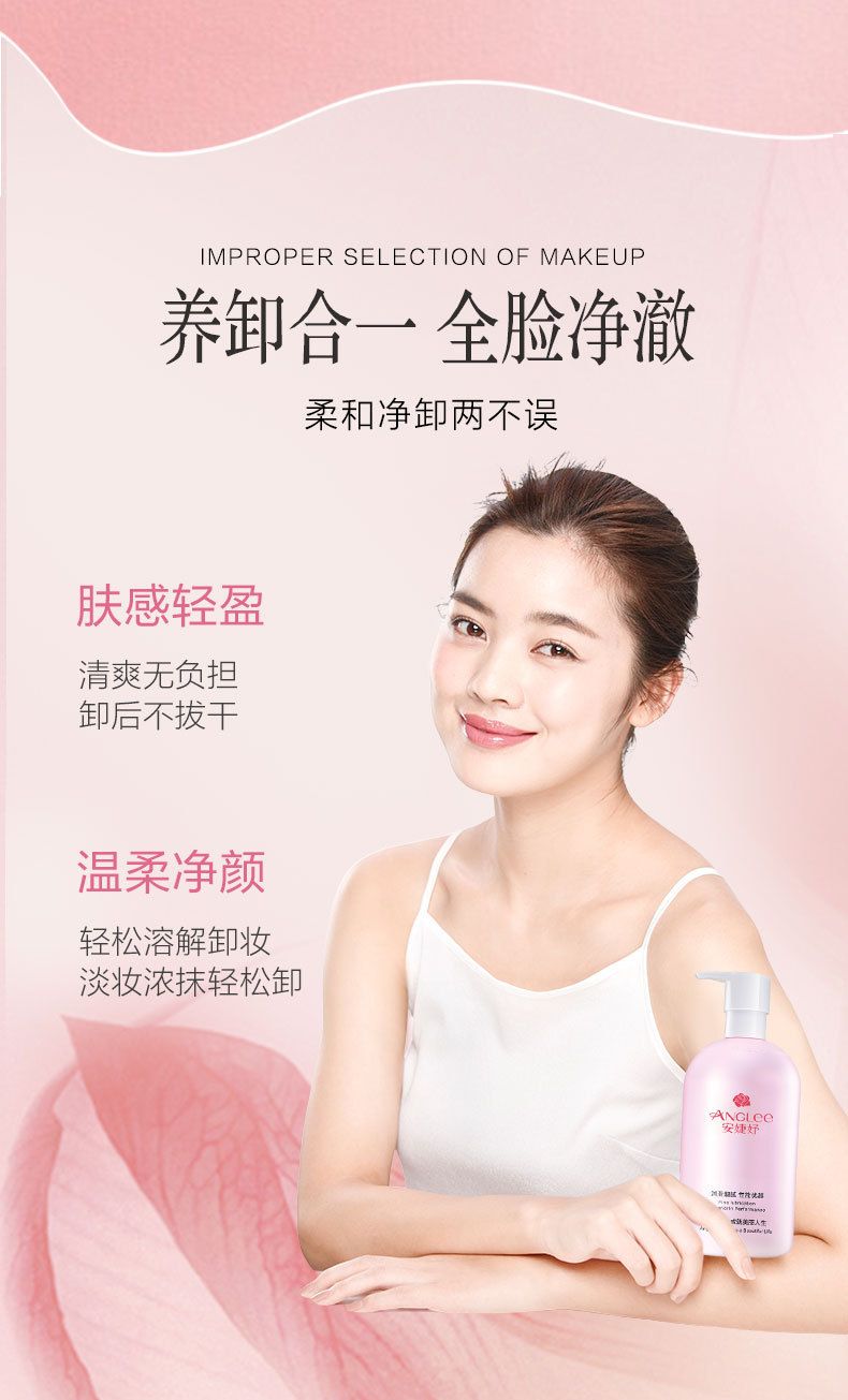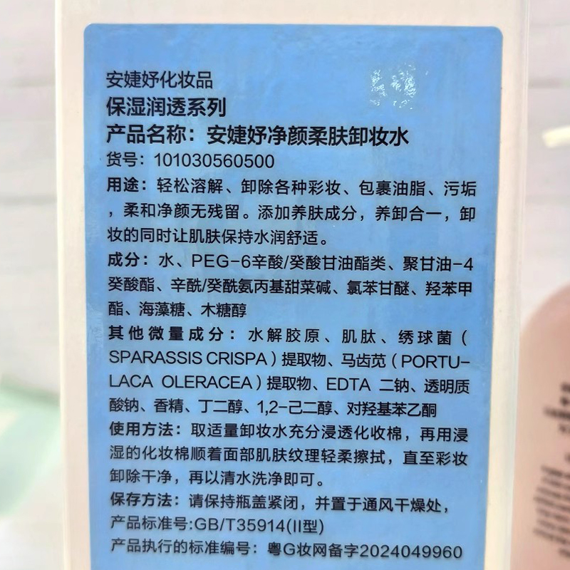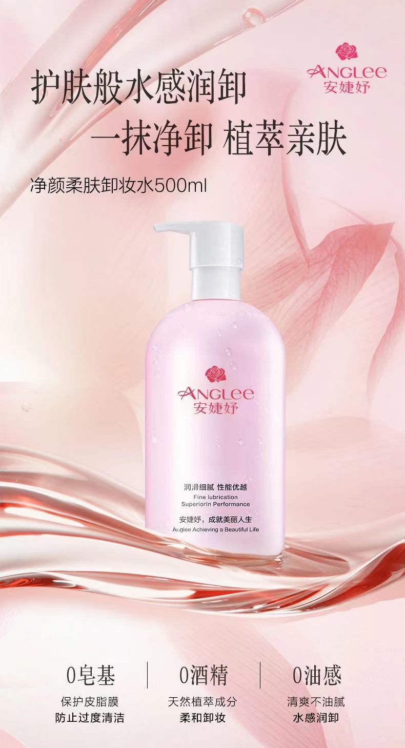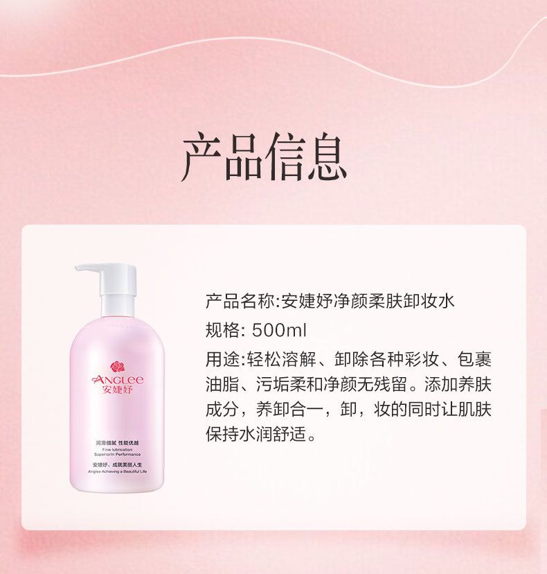 • 商品名称:安婕妤 净颜柔肤卸妆水500ml 水感溶妆、轻盈不黏腻、深层净卸、干净不残留、肤感舒适不紧绷