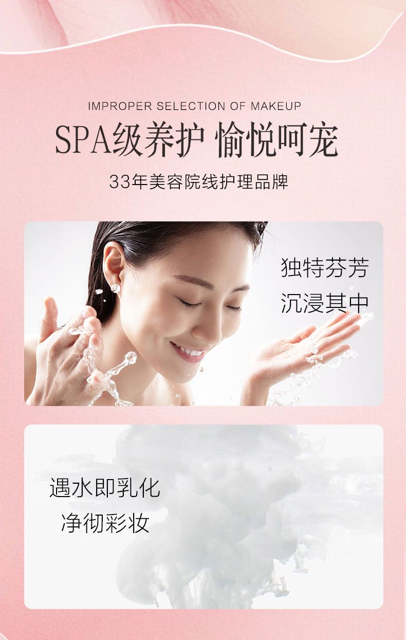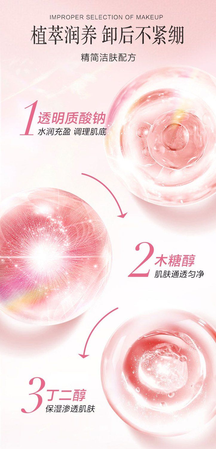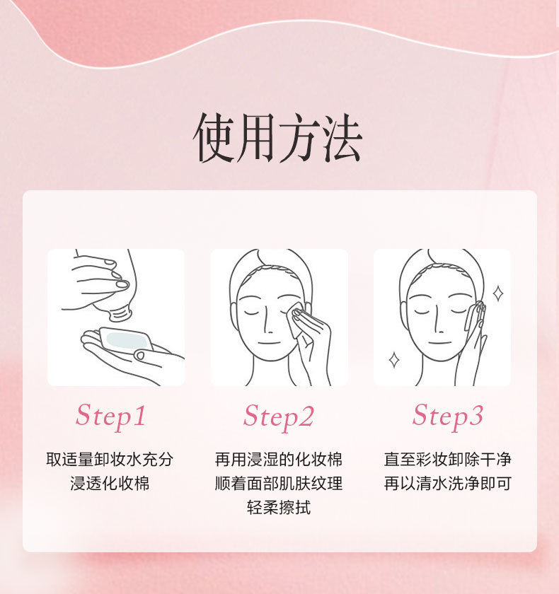 轻松溶解、卸除各种彩妆、包裹油脂、污垢,柔和净颜无残留。添加养肤成分,养卸合一,卸妆的同时让肌肤保持水润舒适