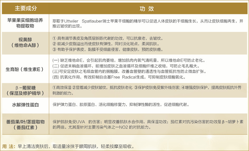 1.多效抗衰眼霜产品,触感柔细润泽不腻,眼部肌肤吸收后无任何负担;2.多种有效成份可达抗老,抗氧化抗自由基之功效,专门针对因年龄或环境因素引致的眼部及唇部皱纹;3.蕴含保护肌肤弹性的成份,可维持防止眼部肌肤松弛、眼角皱纹及眼角下垂的现象产生