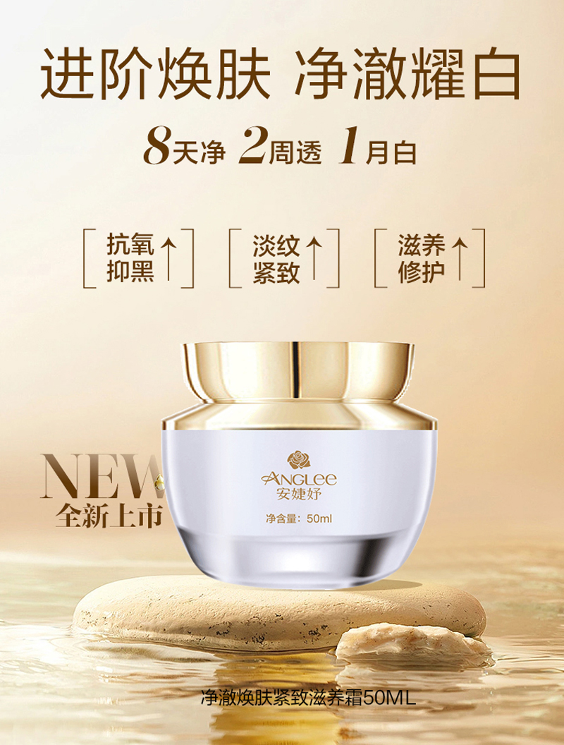 • 商品名称:安婕妤 净澈焕肤紧致滋养霜50ml 抗氧抑黑、亮白减斑、均匀肤色、紧致淡纹、滋养修护、细腻平滑