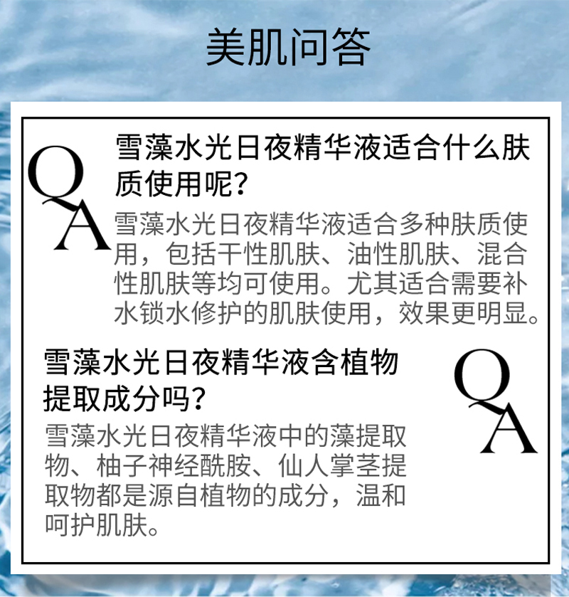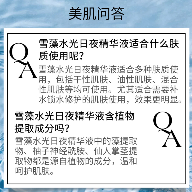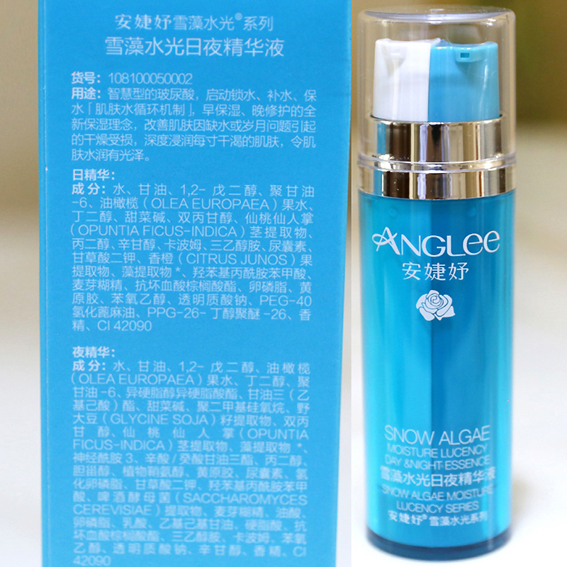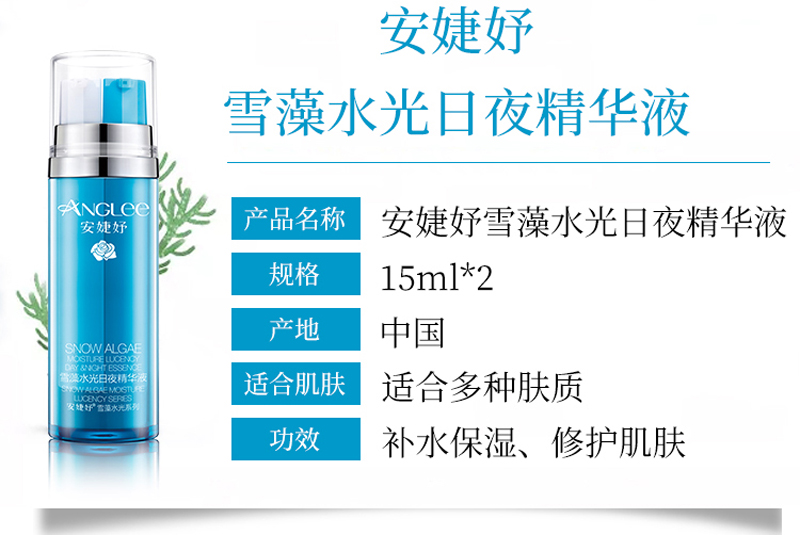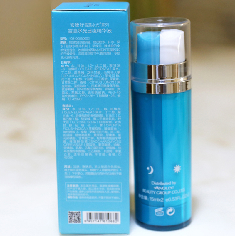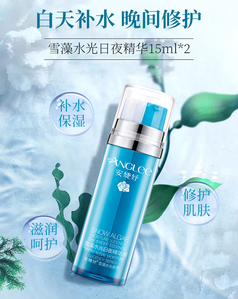 • 商品名称:安婕妤 雪藻水光日夜精华液15ml*2支 早保湿/晚修护、舒缓维稳、密集滋养、柔润细腻、改善干燥粗糙肌肤
