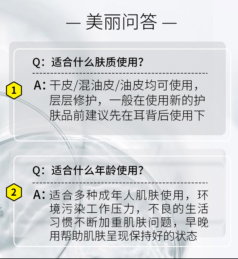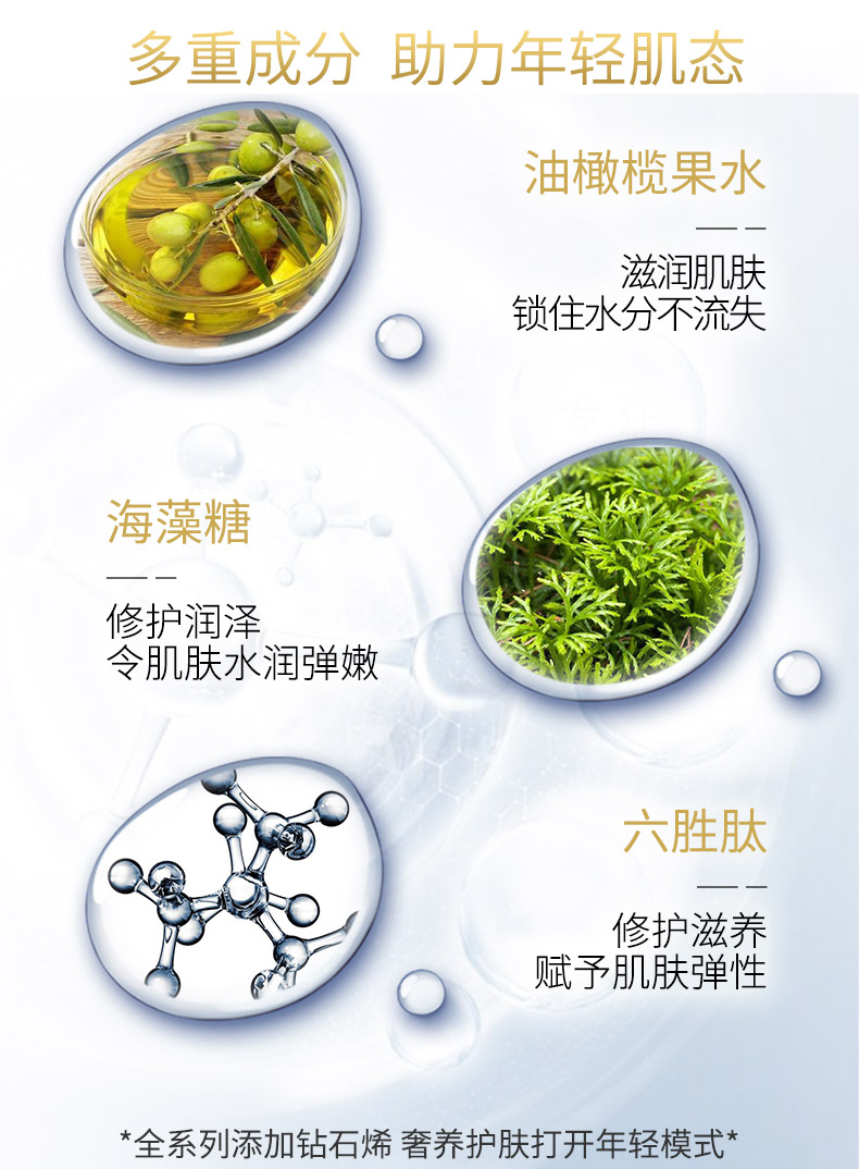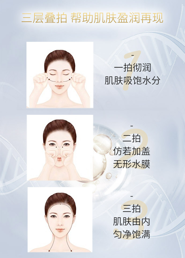 带给肌肤舒适的保湿效果,为皮肤吸收后续护肤品的成分做好准备。赋予肌肤水分,营造保湿环境,打造水润柔嫩的丝滑肌肤