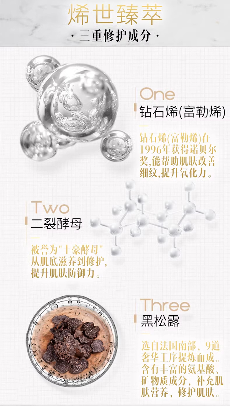 滋润皮肤肌层,修复肌肤同时改善肌肤细纹、粗糙、不平滑,帮助平衡肌肤水油状态,配合二裂酵母成分及松露提取物,有效提升肌肤弹润度,令皮肤变得光滑,紧致,富有弹性,呈现肌肤光泽