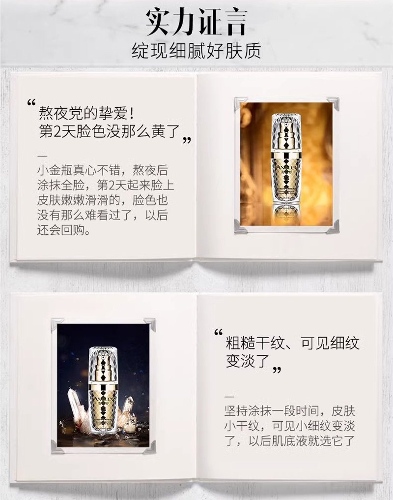 • 商品名称:安婕妤 钻石烯焕颜肌底精华液15ml 修护愈颜、润泽滋养、细腻淡纹、紧致御龄、柔嫩细腻、嘭弹饱满