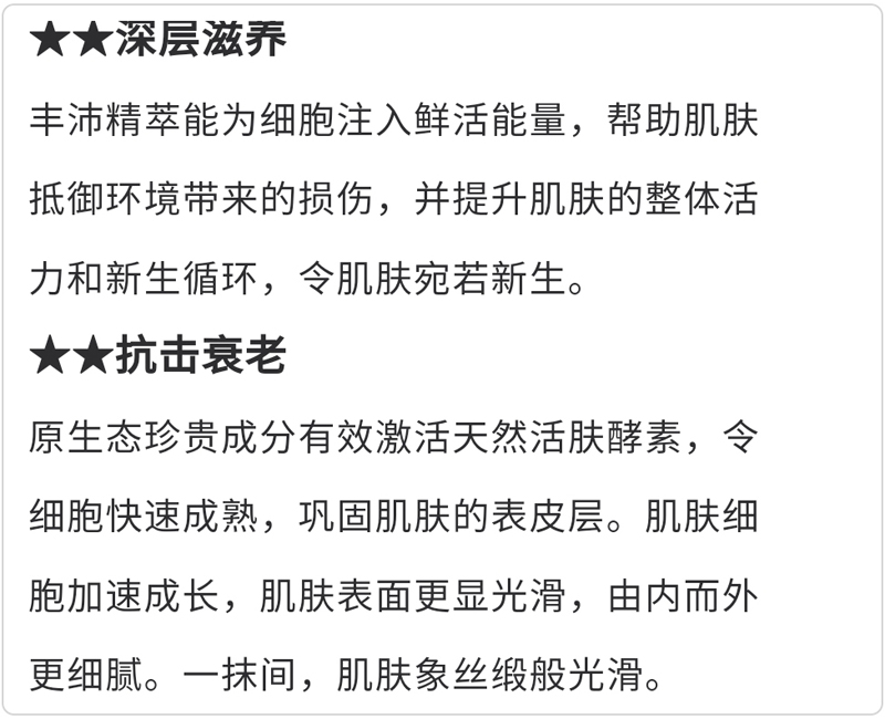 植物萃取精华成分,深入滋养肌肤,巩固肌肤弹性与柔软性,时刻呈现水嫩光滑的肌肤,保护天然皮脂膜,回复年轻状态
