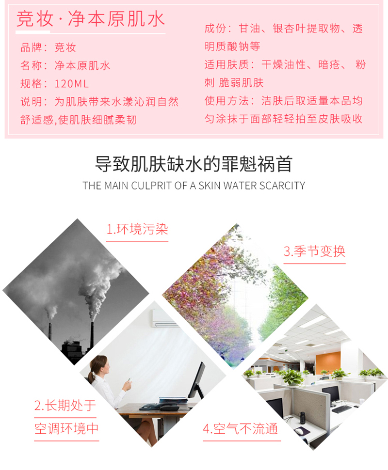 • 商品名称:竞妆 净本原肌水120ml 净润清新、细腻亮泽、改善干燥/油性/暗疮/粉刺/脆弱肌肤