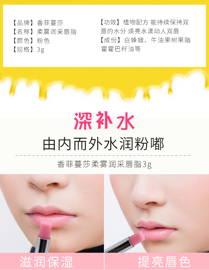 植物配方,能持续保持双唇的水分,焕亮水漾动人双唇