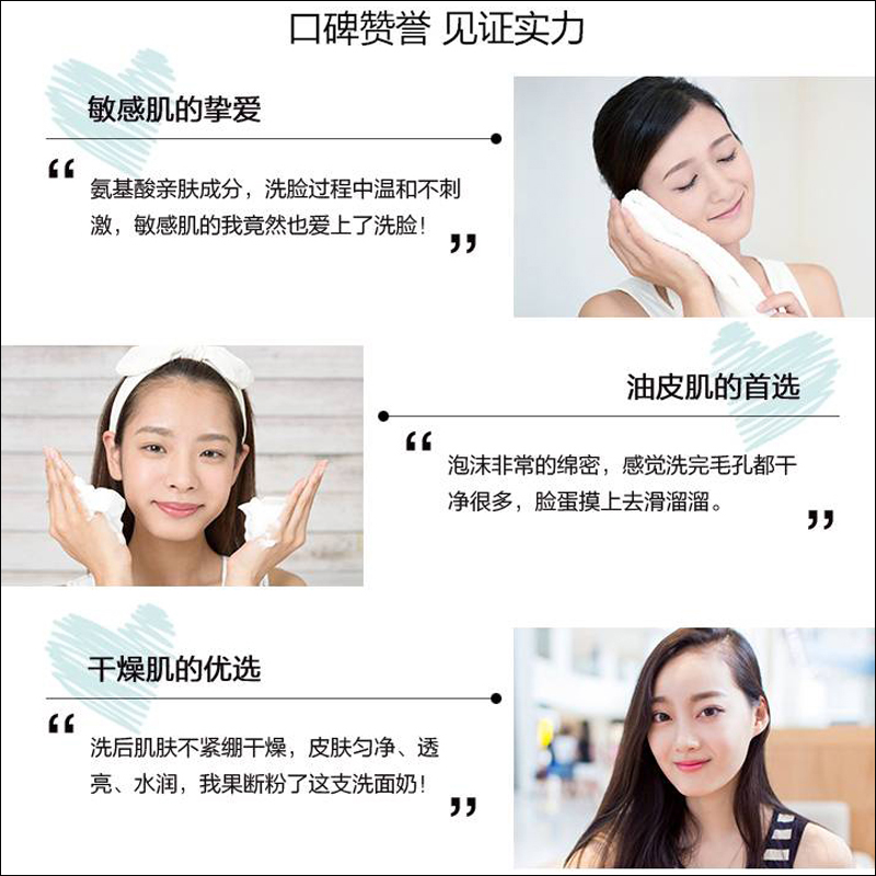 多种氨基酸温和表活,令洗后不紧绷。所蕴含寡肽类精华成分,赋予肌肤养分与活力,改善肌肤质地。泡沫细腻,洗后肌肤匀净、透亮,肌肤焕现洁净水嫩