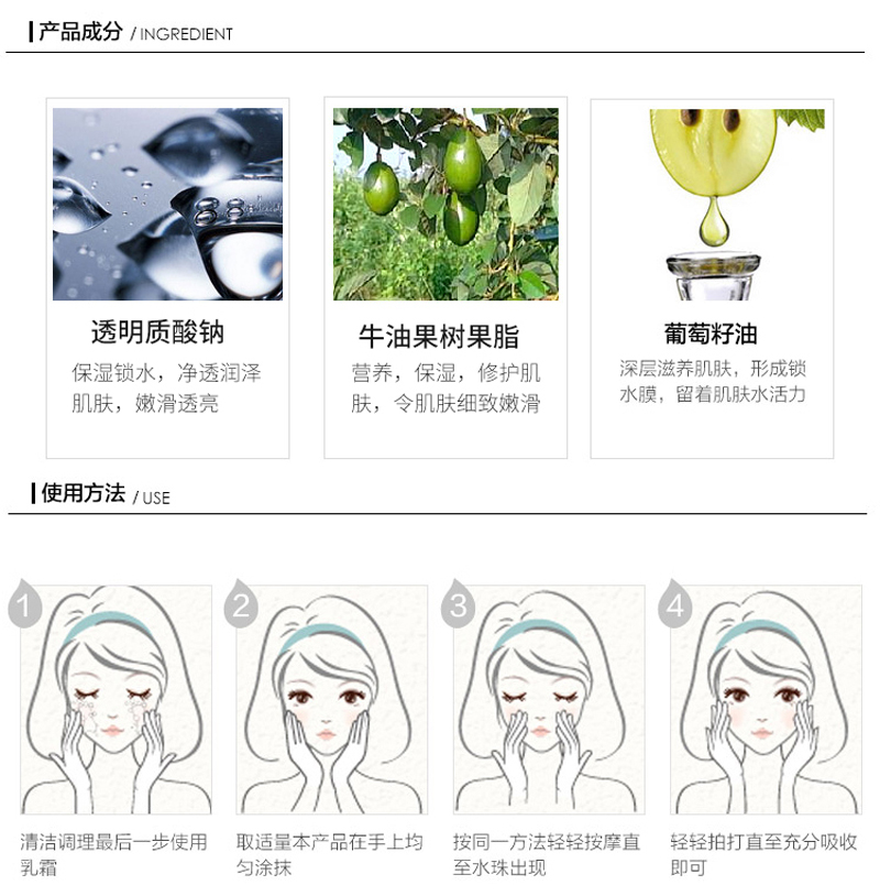 丰富微量元素与营养成分,维持肌肤通透幼滑感,增加肌肤弹性度于紧实度,定格青春娇颜