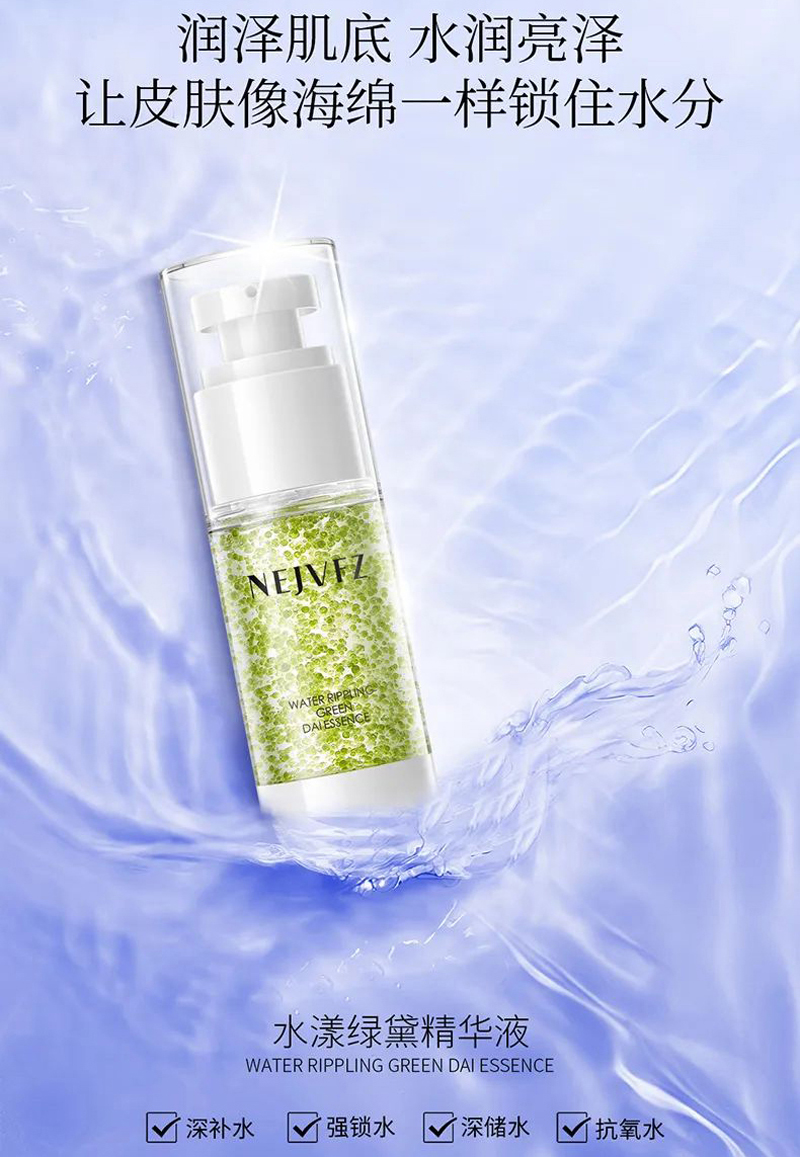 • 商品名称:妮致 水漾绿黛精华液30ml 水润亮泽、抚平干燥、晶莹细滑、提升肌肤水润度/细腻度/光泽度