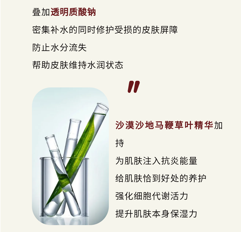 丰富保湿成分充分营养、滋润肌肤、强韧肌肤保湿屏障,令肌肤更加水漾剔透、焕发光采。适用任何肤质,特别适用于晦暗、无光泽无活力色素沉淀肌肤