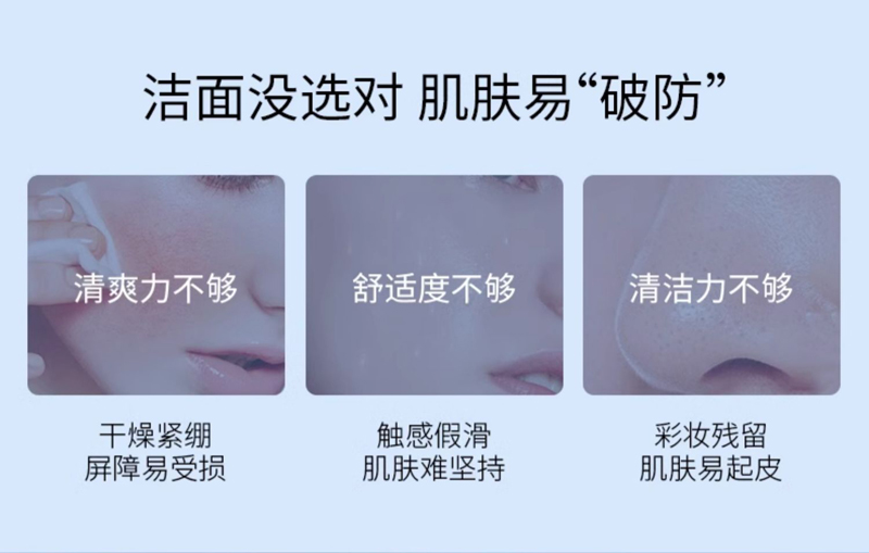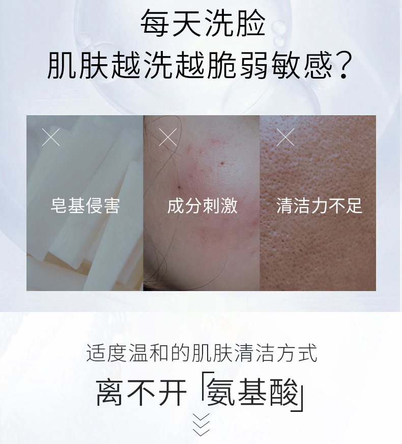 弱酸配方,不含皂剂,能温和溶解油溶性及水溶性污垢,清洁肌肤上的油脂与彩妆;洁肤后残留氨基酸营养成分,不伤害肌肤皮脂膜,能缓解气候变化时产生的肌肤不适现象,使肌肤滋润、柔软、不紧绷