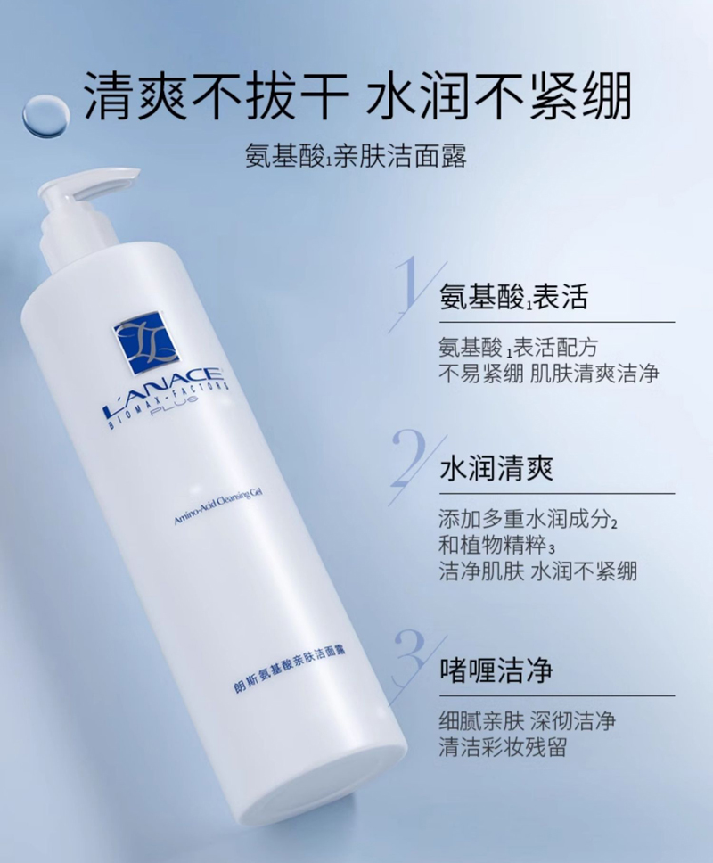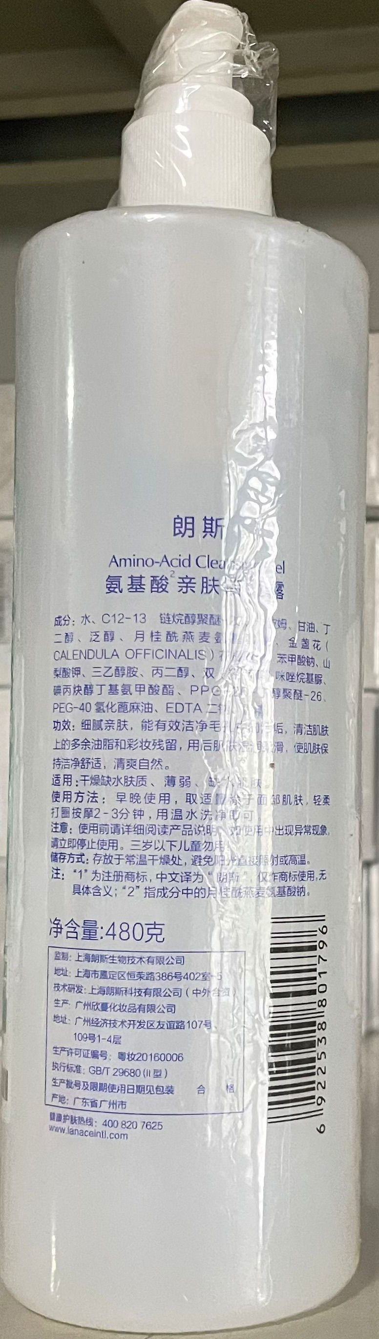 • 商品名称:朗斯 氨基酸亲肤洁面露480g 清爽洁净、水润不紧绷、清洁彩妆残留、细腻亲肤