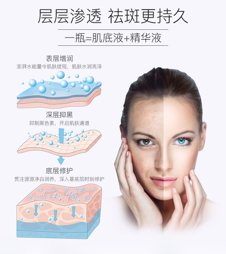 1.一瓶产品,双重功效能——肌底液+精华液