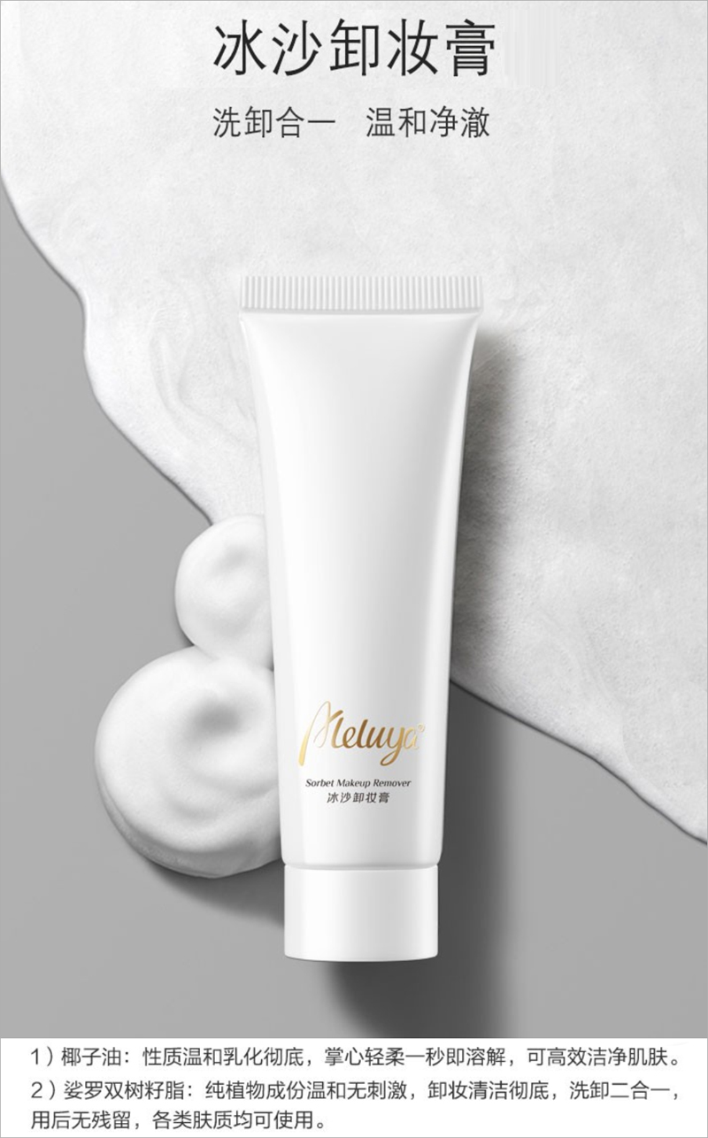 产品功效:冰沙质地,清洁不粘腻,有效卸除彩妆、油脂污垢,令肌肤清透净澈。