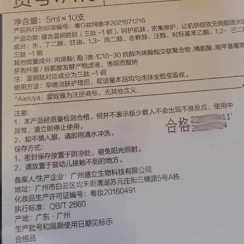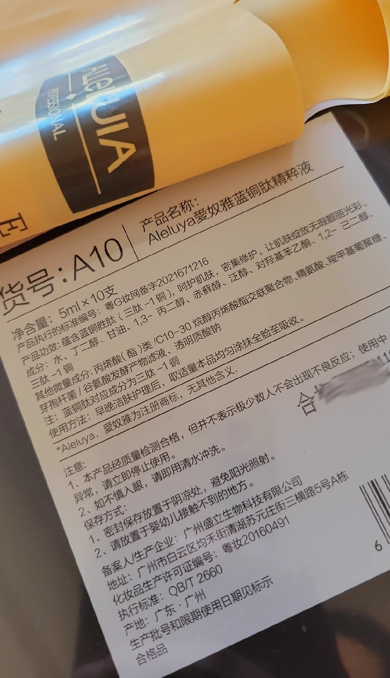 • 商品名称:爱奴雅 蓝铜肽原液5ml*10支 温润修护受损肌肤、红血丝/泛红刺痛/术后脆弱/痘痘肌肤