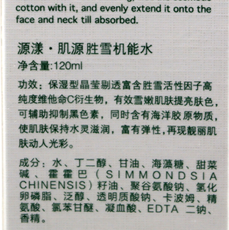 • 商品名称:源漾 肌源盈润臻白机能水120ml(肌源胜雪机能水)层层焕亮、抗击氧化、淡化黑色素、提亮肤色