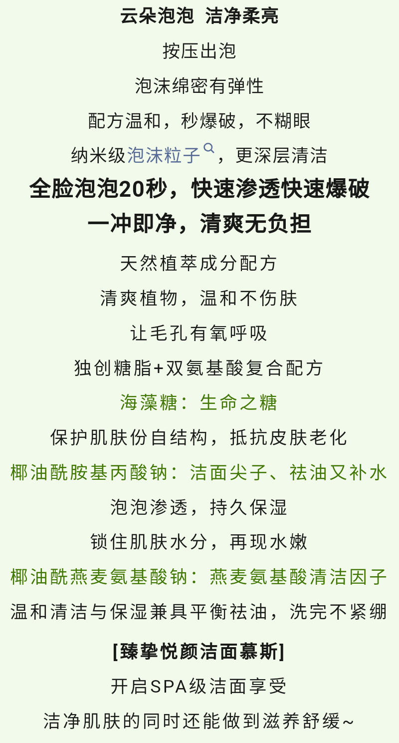 • 商品名称:源漾 臻挚悦颜洁面慕斯180ml 清洁油脂污垢/卸妆残留物、滋润肌肤、净透不紧绷