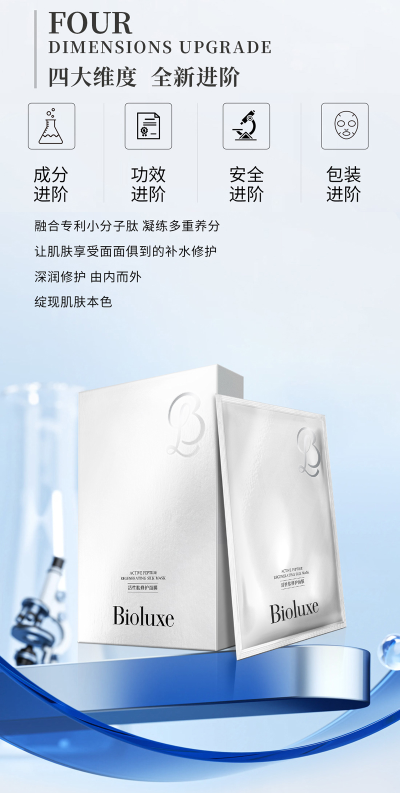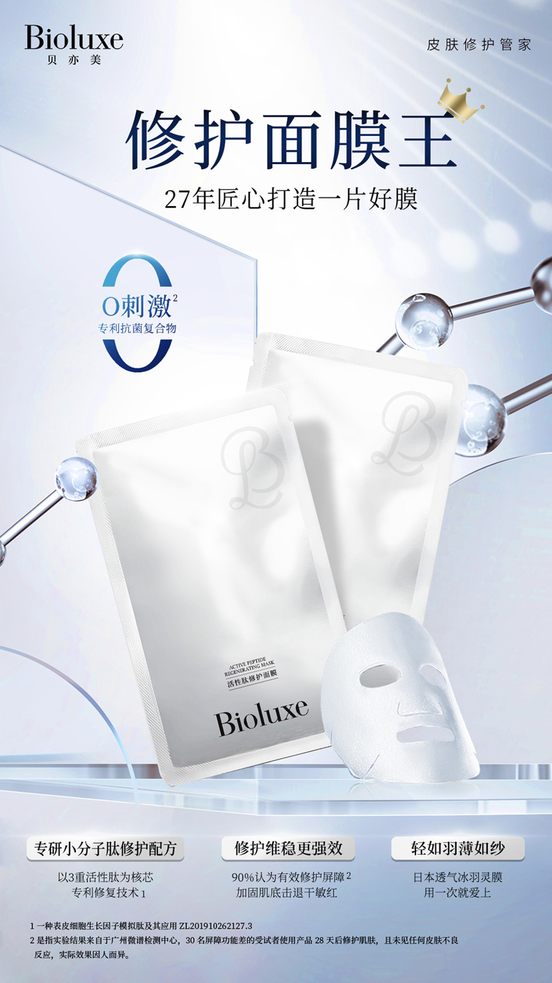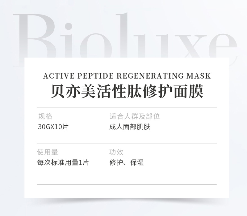 • 商品名称:BIOLUXE活性肽修护面膜25g*10片 舒缓修护、改善敏弱肌肤、强化基底、舒柔水润