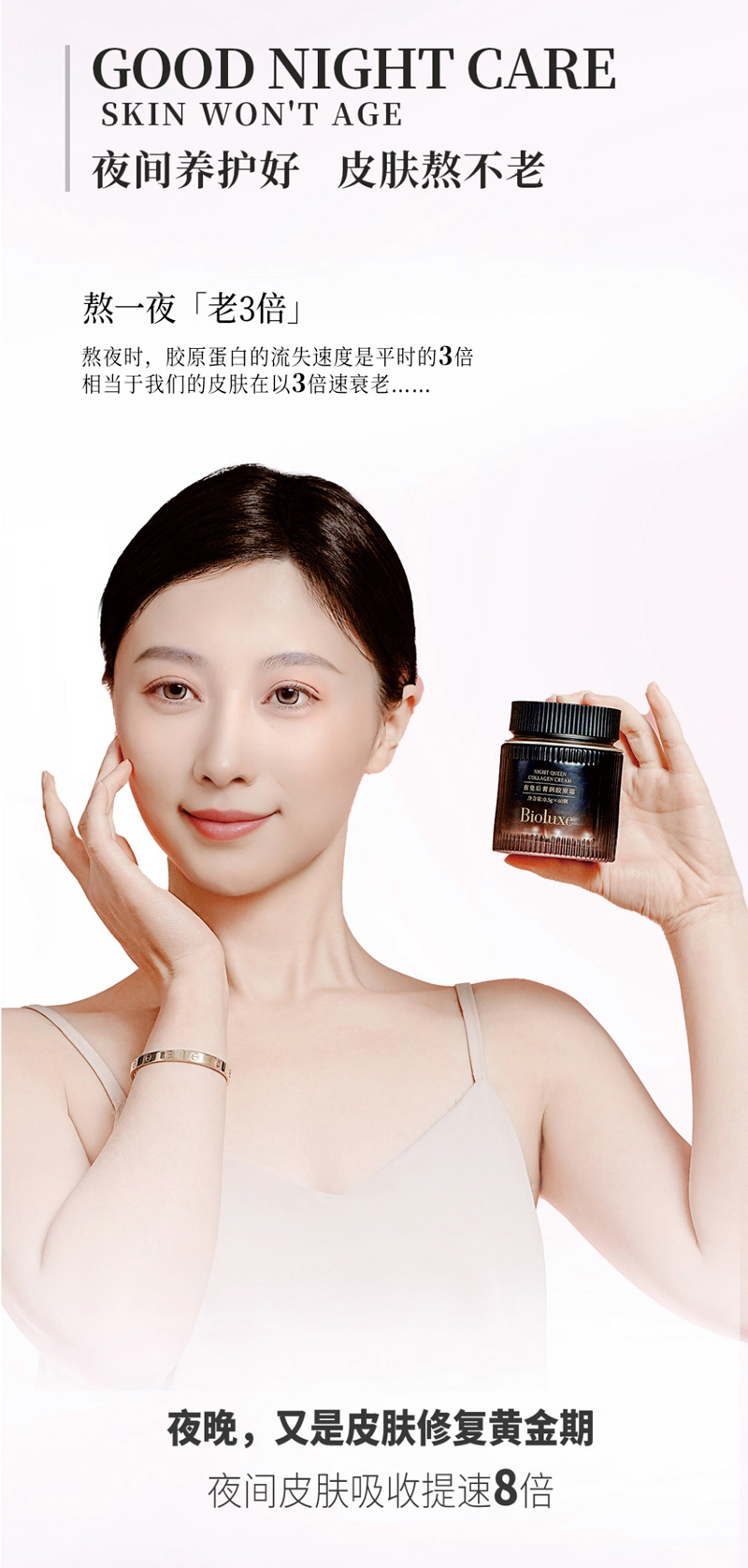 适合肌肤:呵护型抗老化产品,适用于各种肤质,尤其为熬夜肌肤与敏弱型抗老化需求人群提供精准呵护