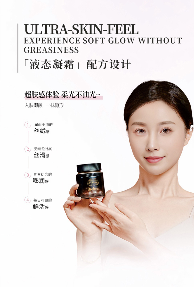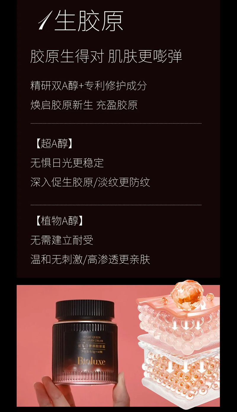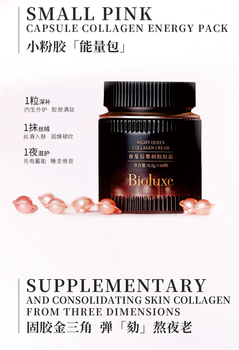 • 商品名称:BIOLUXE夜皇后奢润胶原霜0.5g*60颗 加护屏障/厚脸皮、深补胶原/不跨脸、丝滑柔润/不卡粉