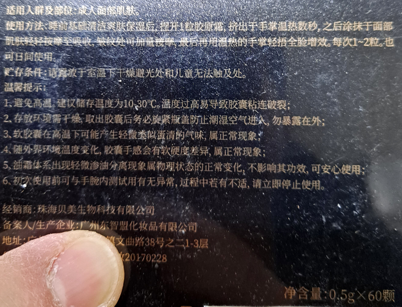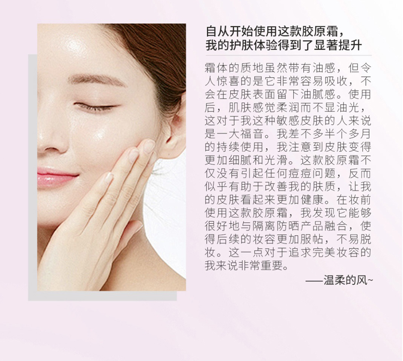 使用方法:睡前基础清洁爽肤保湿后,捏开1粒胶原霜,挤出于手掌温热数秒,之后涂抹于面部肌肤轻轻按摩至吸收,皱纹处可加量按摩,最后再把温热的手掌轻捂全脸增效。每次1-2粒,也可以日间使用。