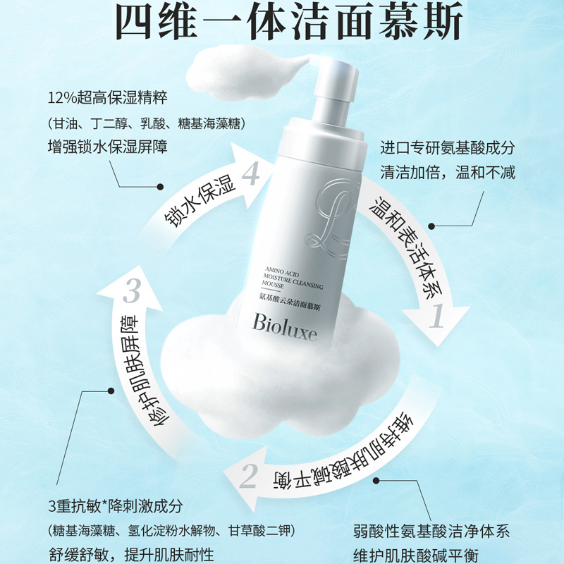 • 商品名称:BIOLUXE氨基酸云朵洁面慕斯120ml 清洁彩妆残留物、用后皮肤清新/丝滑/柔润