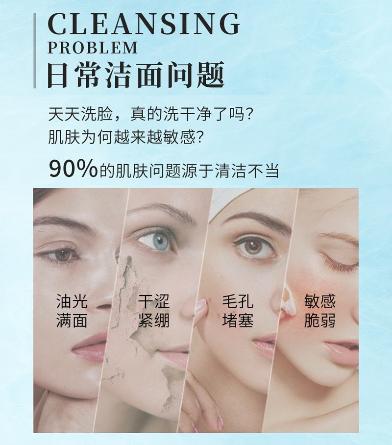 温和细腻的泡沫无刺激的清洁彩妆残留物、皮肤表面多余的皮脂和污物。用后皮肤清新、丝滑柔润