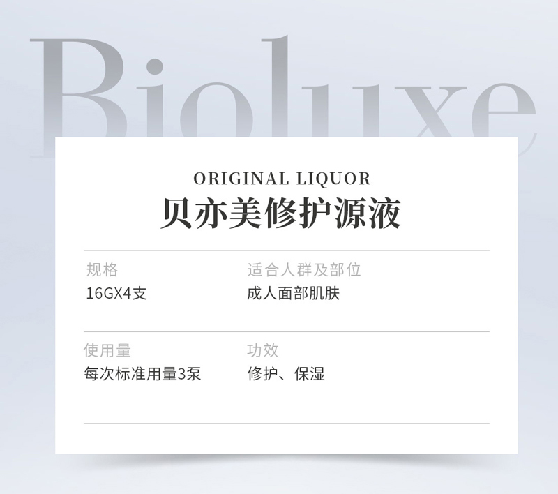 • 商品名称:BIOLUXE修护原液16g*4支/盒 修复各种皮肤问题(晒后修复、肤色不均、纹刺、敏弱、脆弱等)