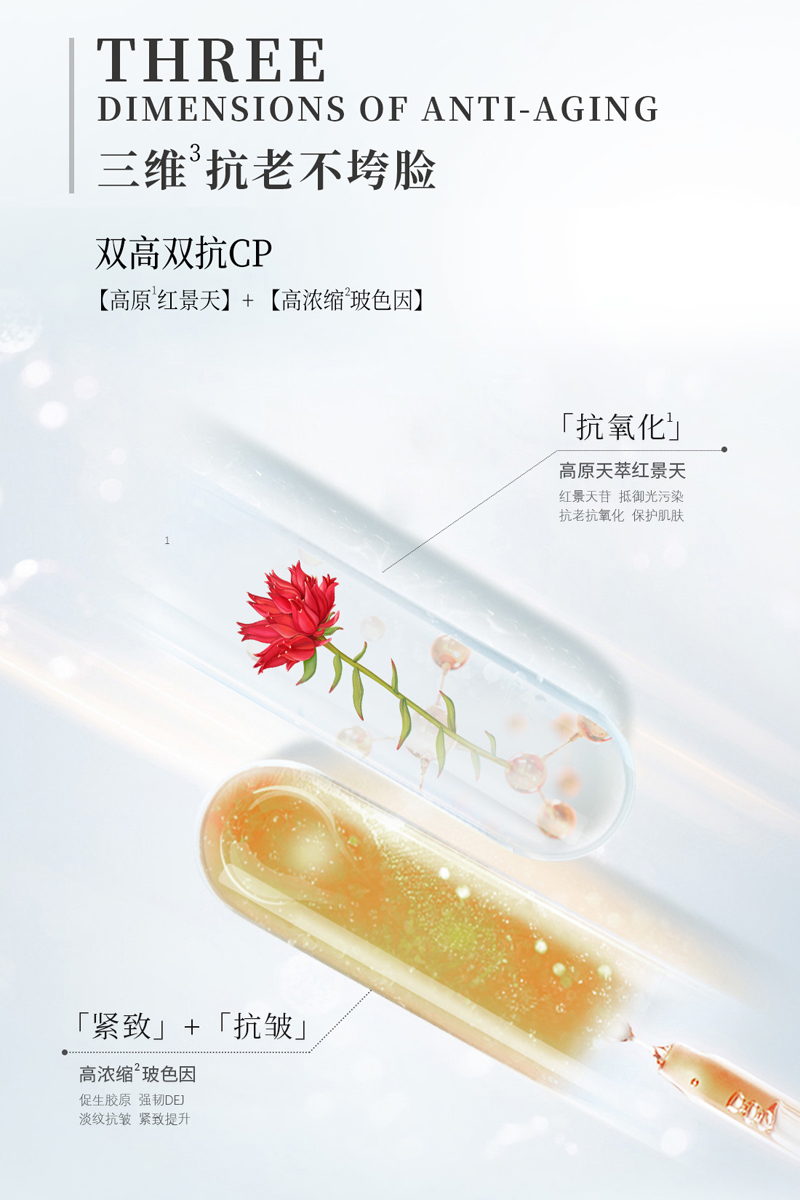 蕴含红景天、玻色因等成分,防晒、隔离、遮瑕、保湿、紧致多效合一,帮助隔离彩妆、灰尘,同时提亮肤色,触感柔滑,带给肌肤明亮的自然妆感