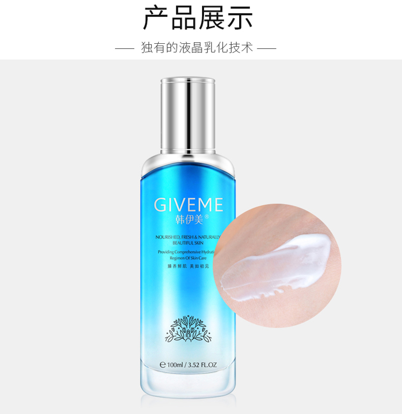水乳质地,丰盈保湿、水润滋养,改善肌肤干燥、粗糙、无光泽现象,透现水润柔滑的皮肤