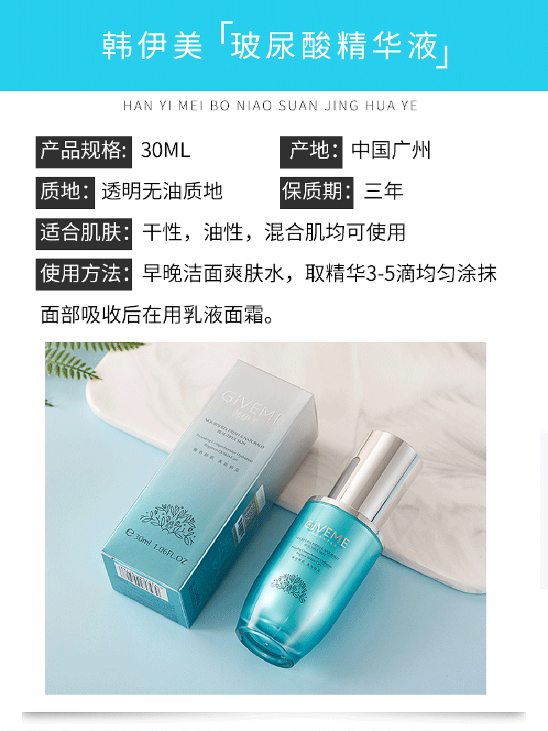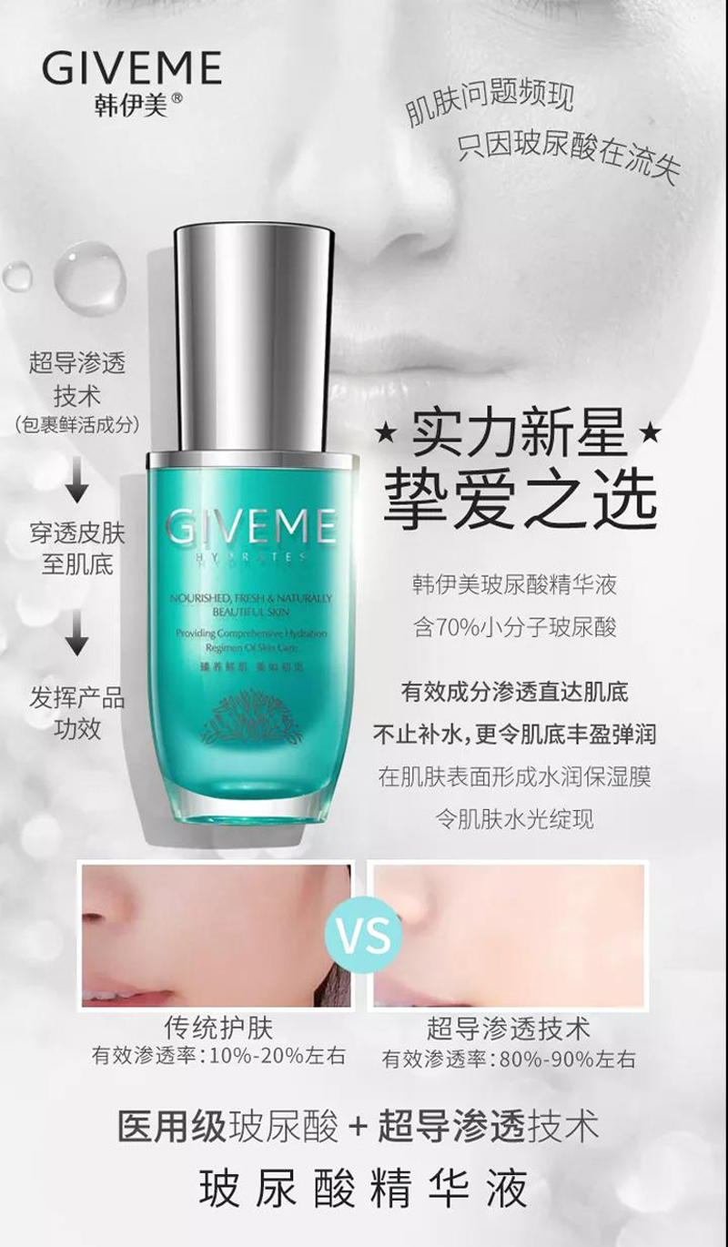 GIVEME韩伊美 玻尿酸精华液30ml保湿抗老化,含70%小分子玻尿酸