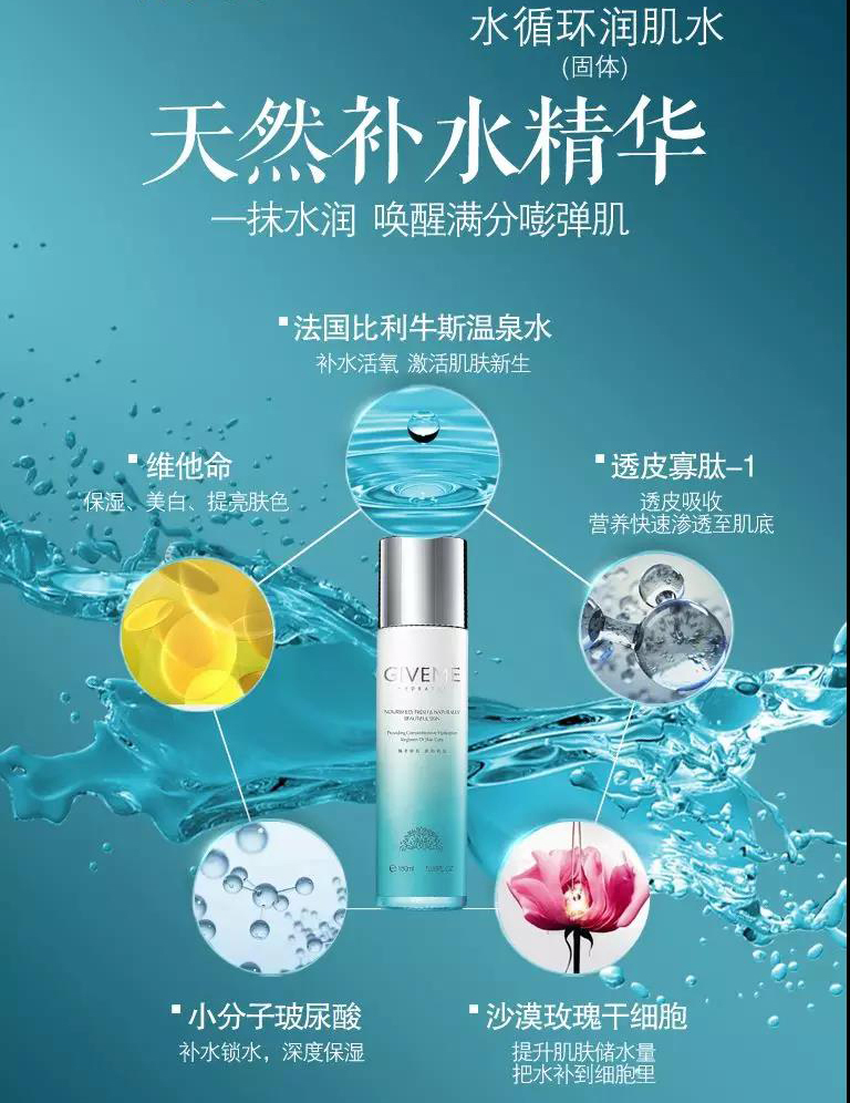 为肌肤提供充沛水分,补水保湿,改善干燥粗糙肤色不匀,焕发肌肤水润活力