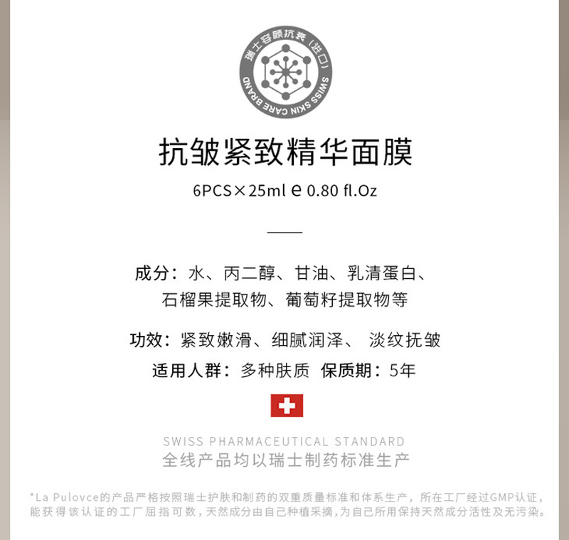 拉普瑞斯 抗皱紧致精华面膜25mlx6片 紧致提拉、细腻润泽、淡纹抚皱、细滑弹嫩