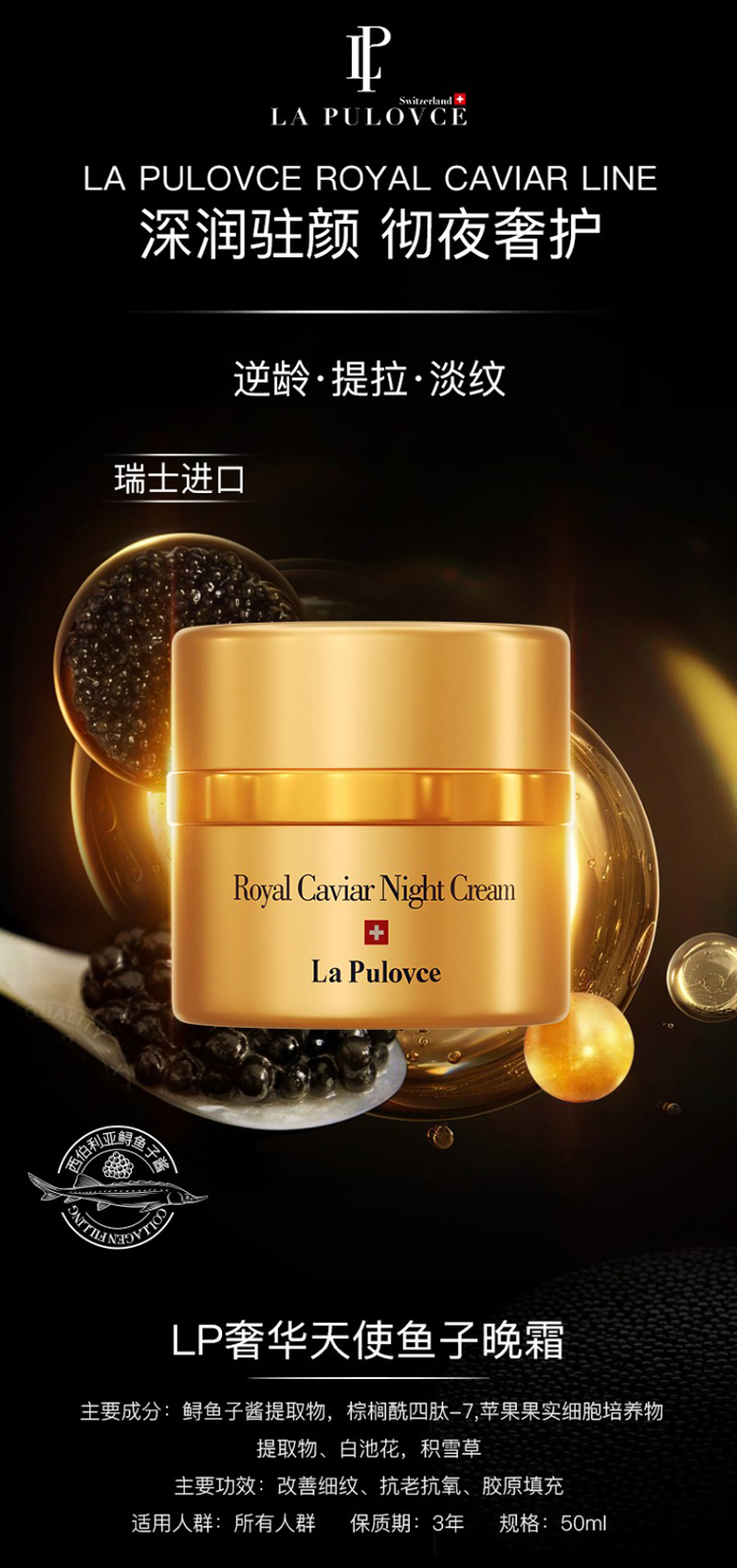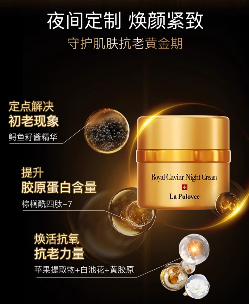 拉普瑞斯 奢华天使鱼子晚霜50ml 改善细纹、紧致弹力、提亮肤色、抗氧化/抗老化、填充胶原蛋白