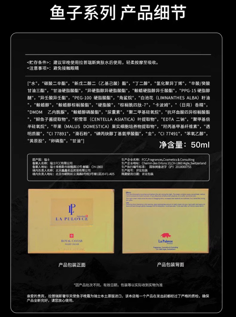 • 商品名称:拉普瑞斯 奢华天使鱼子晚霜50ml 改善细纹、紧致弹力、提亮肤色、抗氧化/抗老化、填充胶原蛋白